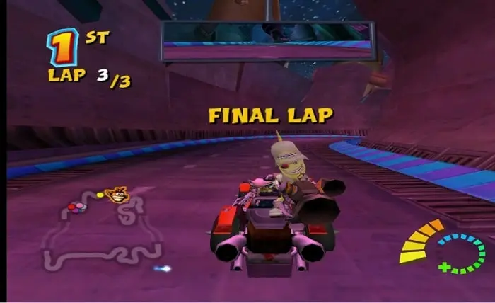Crash Tag Team Racing یکی از تجربههای خاص و متفاوت دنیای کرش است که توانسته با ترکیب مسابقه و ماجراجویی، جایگاهی ویژه میان طرفداران پیدا کند. این بازی برخلاف عناوین صرفاً مسابقهای، با اضافه کردن لایههای داستانی و قابلیت تعامل با محیط، حالوهوایی تازه ارائه میدهد و به همین دلیل برای بازیکن تنها یک رقابت رانندگی ساده نیست، بلکه تجربهای چندبعدی و پر از اتفاقات غیرمنتظره است. در بخش اصلی، همانطور که انتظار میرود، مسابقات پرسرعت با حضور شخصیتهای شناختهشده دنیای Crash جریان دارد. هر شخصیت سبک رانندگی و تواناییهای خاص خود را دارد و همین موضوع تنوع رقابتها را افزایش میدهد. یکی از ویژگیهای شاخص این بازی، امکان ترکیب و اتصال خودروها در جریان مسابقه است. بازیکن میتواند با ماشینهای دیگر متحد شود و یک وسیله نقلیه ترکیبی ایجاد کند که قدرت و تواناییهای ویژهای دارد. این مکانیک تازه، استراتژی مسابقه را تغییر میدهد و باعث میشود تصمیمگیریهای لحظهای اهمیت زیادی پیدا کند. اما بخش جذاب بازی فقط به مسابقات محدود نمیشود. Crash Tag Team Racing دارای حالت ماجراجویی است که در آن بازیکن میتواند آزادانه در محیطها جستوجو کند، معماها را حل کند، با شخصیتهای مختلف تعامل داشته باشد و حتی آیتمهای پنهان را کشف کند. این بخش به بازی عمق بیشتری میبخشد و آن را فراتر از یک عنوان مسابقهای ساده قرار میدهد. در واقع بازیکن بین مسابقات، فرصت دارد که با گشتوگذار در دنیا و انجام مأموریتهای جانبی، هم داستان را پیش ببرد و هم محتوای تازهای را کشف کند. گرافیک بازی با حالتی رنگارنگ و کارتونی طراحی شده که بهخوبی با فضای طنز و سبکبال مجموعه Crash هماهنگ است. طراحی مسیرها، شخصیتها و محیطها پر از جزئیات خندهدار و اغراقآمیز است که حال و هوای بازی را سبک و سرگرمکننده میکند. انیمیشنهای بامزه و صداگذاری شاد نیز این حس طنز را تقویت کرده و تجربهای سرزنده و پرانرژی به بازیکن میدهد.
